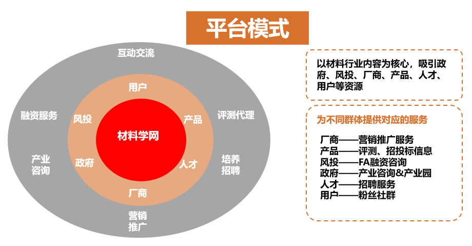 材料学网提供服务多样,包括原创内容(基础知识、科研技能、新闻资讯、科技服务、数值模拟、论文写作等)、科技服务(材料购买、材料制备、材料分析检测、广告投递等),服务设备(共享有检测设备、样品制备设备、产业化设备共享)。服务于中国高校、企业及科研院所的发展,以及相应科研成果的推广、转让和咨询在未来,一方面,服务好材料学相关专业人员,根据对专业用户的调研了解其需求为其开展精细化、特色化服务。另一方面,努力开拓大众市场,对大众的材料安全意识进行提高,提升大众对材料的认知。