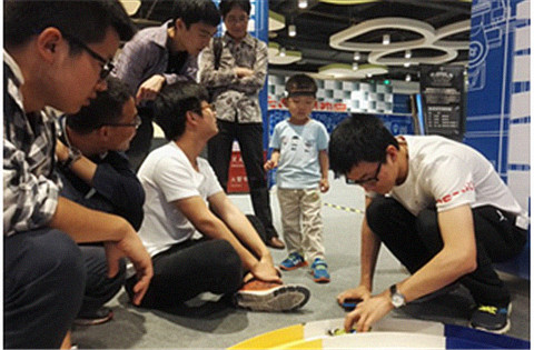 确定做脑应用产品方向后,李妮蔚团队便开始寻找切入点。时值《超能特工队》电影在国内红极一时,团队受此启发,有了将大脑和实物相连接的想法。首先联想到的载体就是车。起初团队尝试制作智能车,很快成功了,但智能车成本高昂,推向市场十分困难。几经推敲团队最后选择了儿童玩具四驱车。制作过程中,他们不停地改进设计,不断地调整方案。终于,脑控四驱车成功问世。