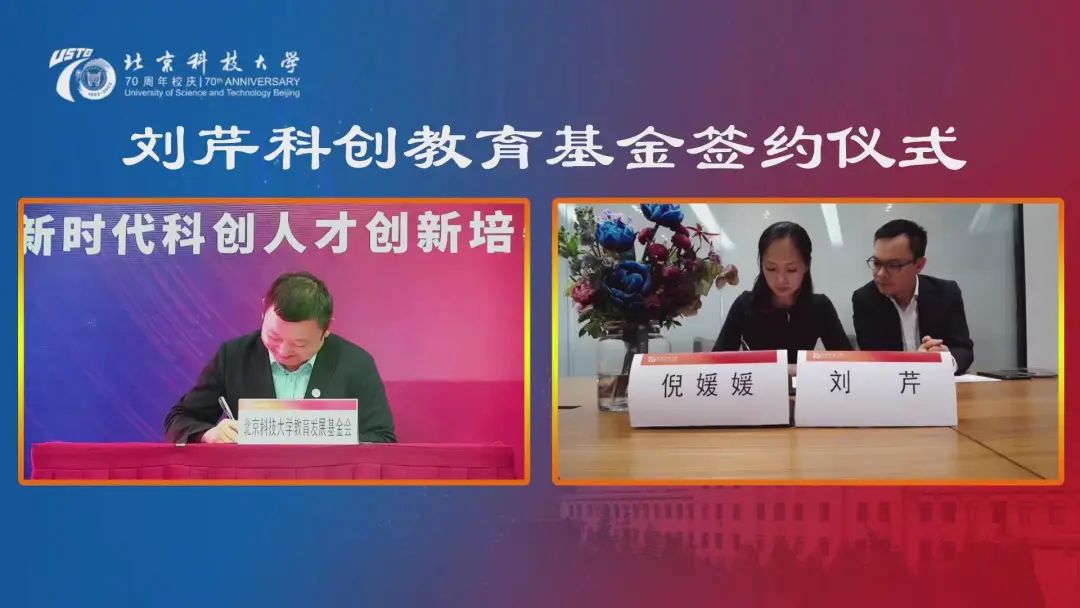 副校长王鲁宁与刘芹校友夫人倪媛媛女士共同签署“ 北京科技大学刘芹科创教育基金”捐赠协议,代表学校接收捐赠支票,并向刘芹校友及夫人倪媛媛女士颁发捐赠证书和“教育贡献奖”纪念牌。刘芹是我校电89级校友、五源资本创始合伙人,作为中国最具有影响力的投资人之一,在投资领域眼光独到、成绩斐然。多年来刘芹校友厚植北科情谊、母校情怀,特别是对学校加强拔尖人才培养顶层设计的积极推动,对学弟学妹们成长的关心和支持。本次科创人才培养项目是由刘芹校友及夫人倪媛媛女士用个人积蓄捐资3000万支持和保障的。