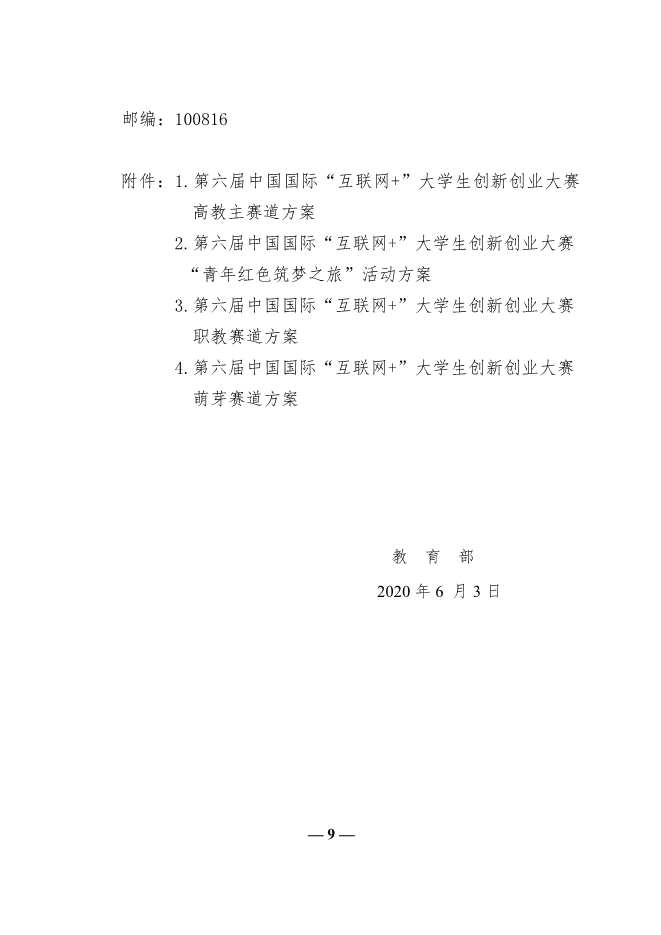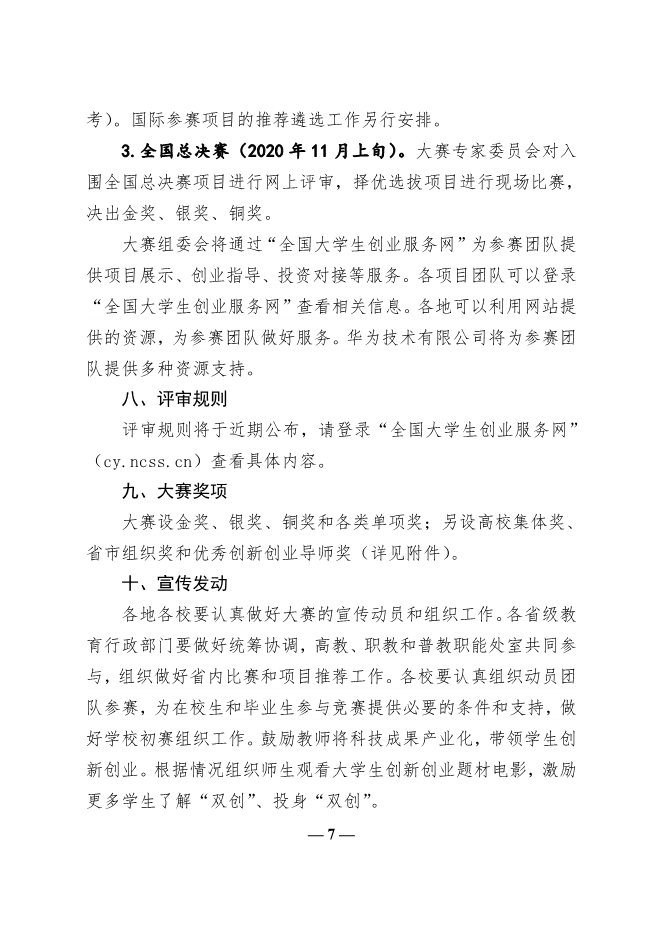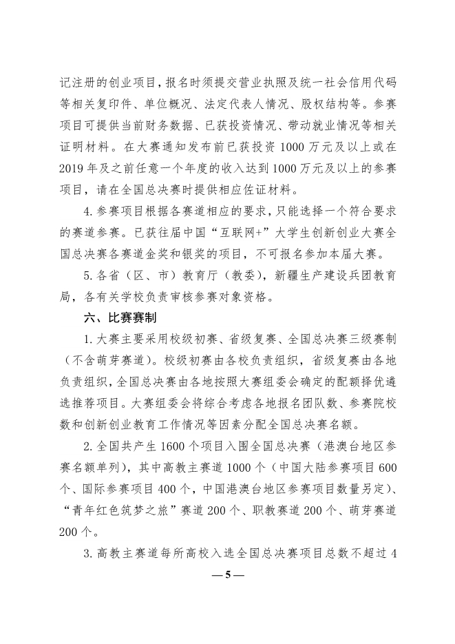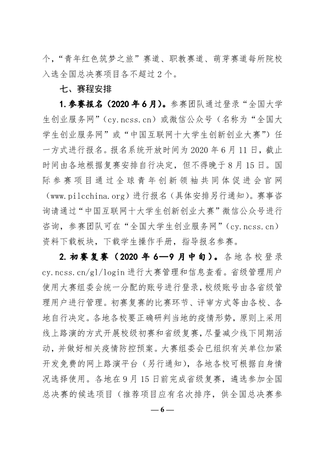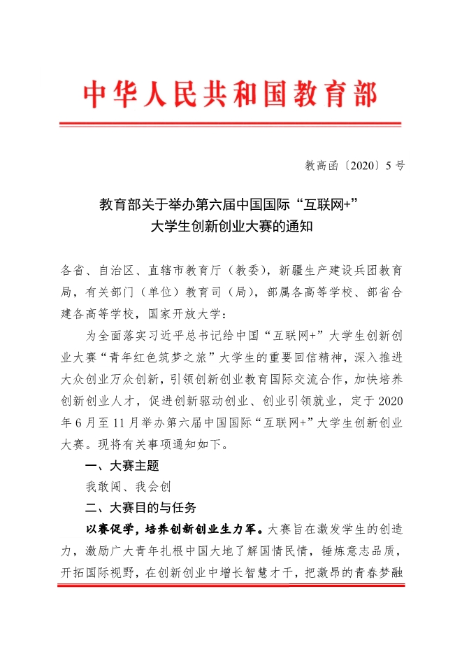 教育部关于举办第六届中国国际“互联网”大学生创新创业大赛的通知2020-6-3