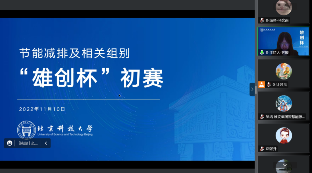 第十一届中国创新创业大赛大中小企业融通雄安绿色数字产业专业赛雄县分赛——北京科技大学“雄创杯”初赛于2022年11月10日下午13时30分在线上采用路演答辩的形式正式开始。