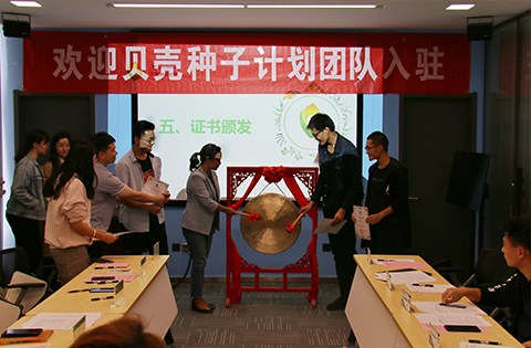 创新创业中心副主任王丽红老师对所有团队能够在几十支优秀的创业团队中脱颖而出,成为了“贝壳种子计划”的一员,也即将是贝壳创空间的一员表示祝贺。她强调,希望所有团队牢记自己的创业初心,继续去享受创业的过程。贝壳创空间会给每个入驻团队提供更好的创业环境,接下来的时间里创空间将会和大家一起进步。