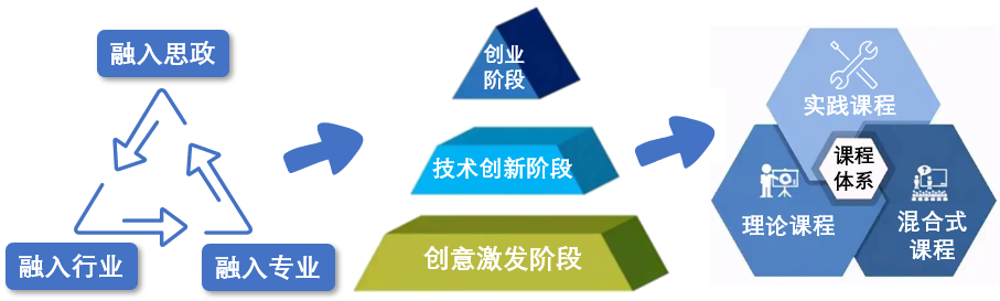 ▲“三阶三融”的创新创业课程体系