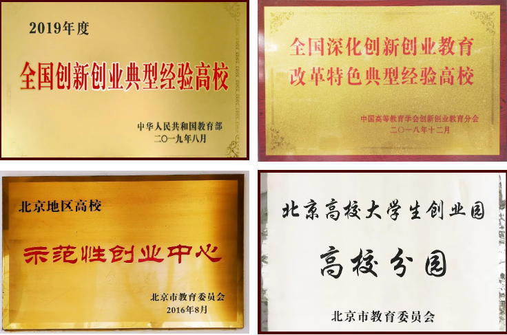 近年来,学校获“全国创新创业典型经验高校”“全国高校实践育人创新创业基地”“全国深化创新创业教育改革特色典型经验高校”“北京市深化创新创业教育改革示范高校”“北京地区高校示范性创业中心”等荣誉。相关经验做法被中央电视台《新闻联播》、人民日报、教育部网站、北京日报等主流媒体多次报道。