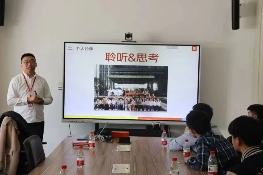 下午14:30分,同学们进入会议室开展了座谈会,入职京东5年韩春涛学长与同学们进行了亲切的交流。