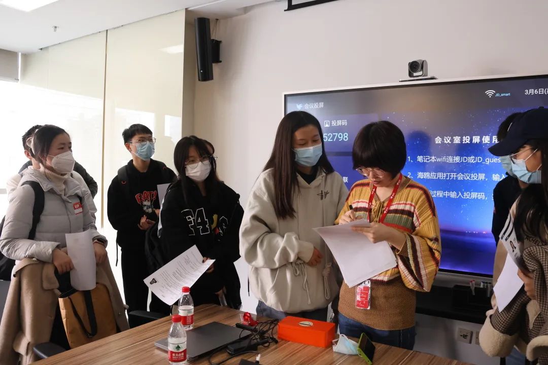 座谈会结束之后,同学们积极投递简历,京东集团的工作人员为同学们给出建议和指导。